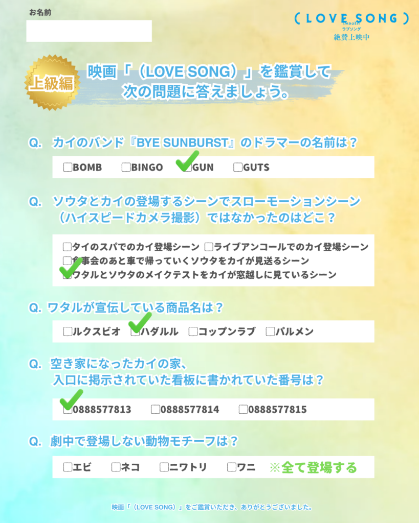 映画『(LOVE SONG)』クイズ上級編の正解発表🌻