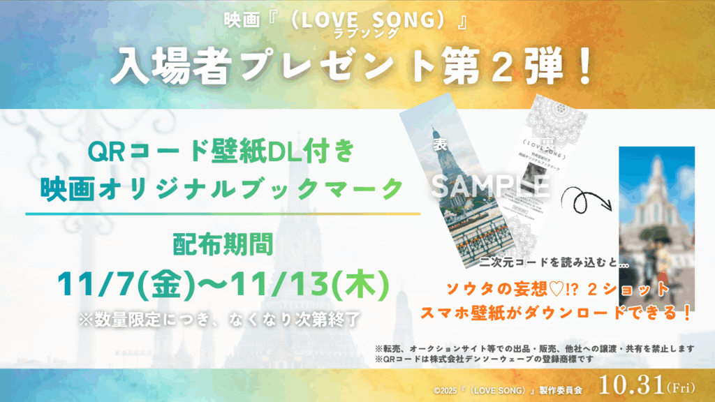 入場者プレゼント第2弾の配布決定!🌻🌻QRコード壁紙DL付き映画オリジナルブックマーク